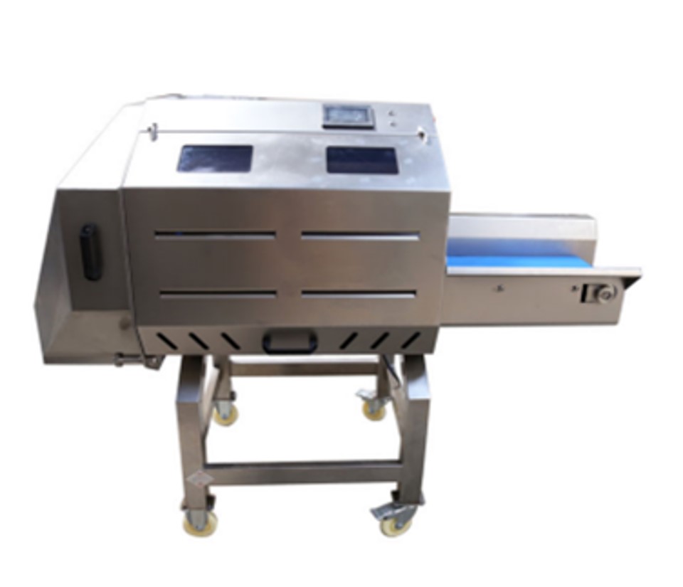 原理:橫向分切機(jī)是橫向切割肉類的機(jī)臺,通過輸送帶傳送,刀片橫向切割,完成肉類的切片操作