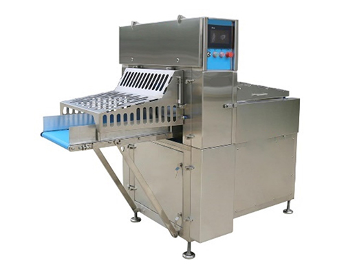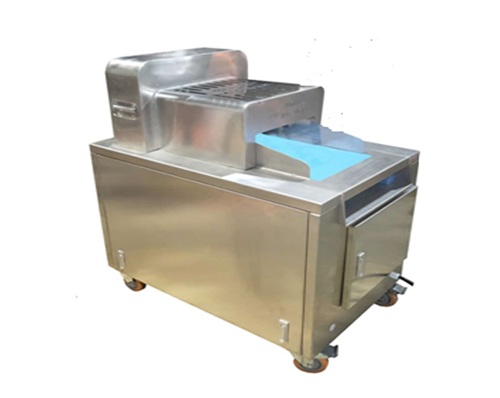 原理:排骨切塊機(jī)是帶骨類切塊切片的機(jī)臺,通過鏈板傳送,刀組切割,完成帶骨類的切塊操作