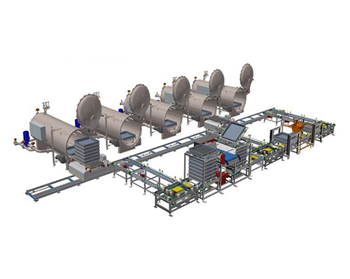 原理:高溫殺菌非標(biāo)自動生產(chǎn)線,該設(shè)備由裝卸籠機(jī)、籠框移栽機(jī)、液壓升降機(jī)、滅菌釜(釜內(nèi)傳送裝置、自動開門裝置)等組成。